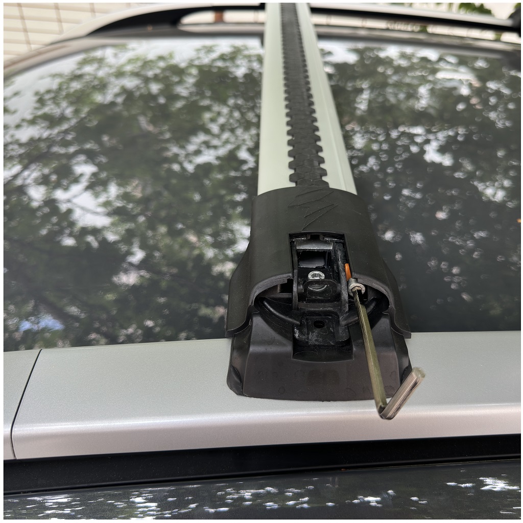 ➡️ Bagażnik montowany miedzy relingi, dzięki czemu belki umieszczone są nisko nad dachem.