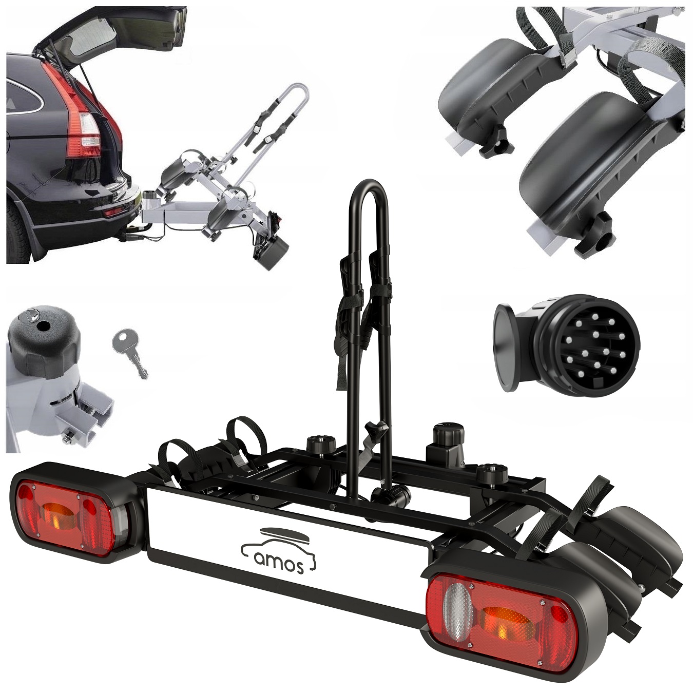 Platforma rowerowa bagażnik na hak AMOS TYTAN 2 PLUS na 2 rowery 13PIN CZARNA.