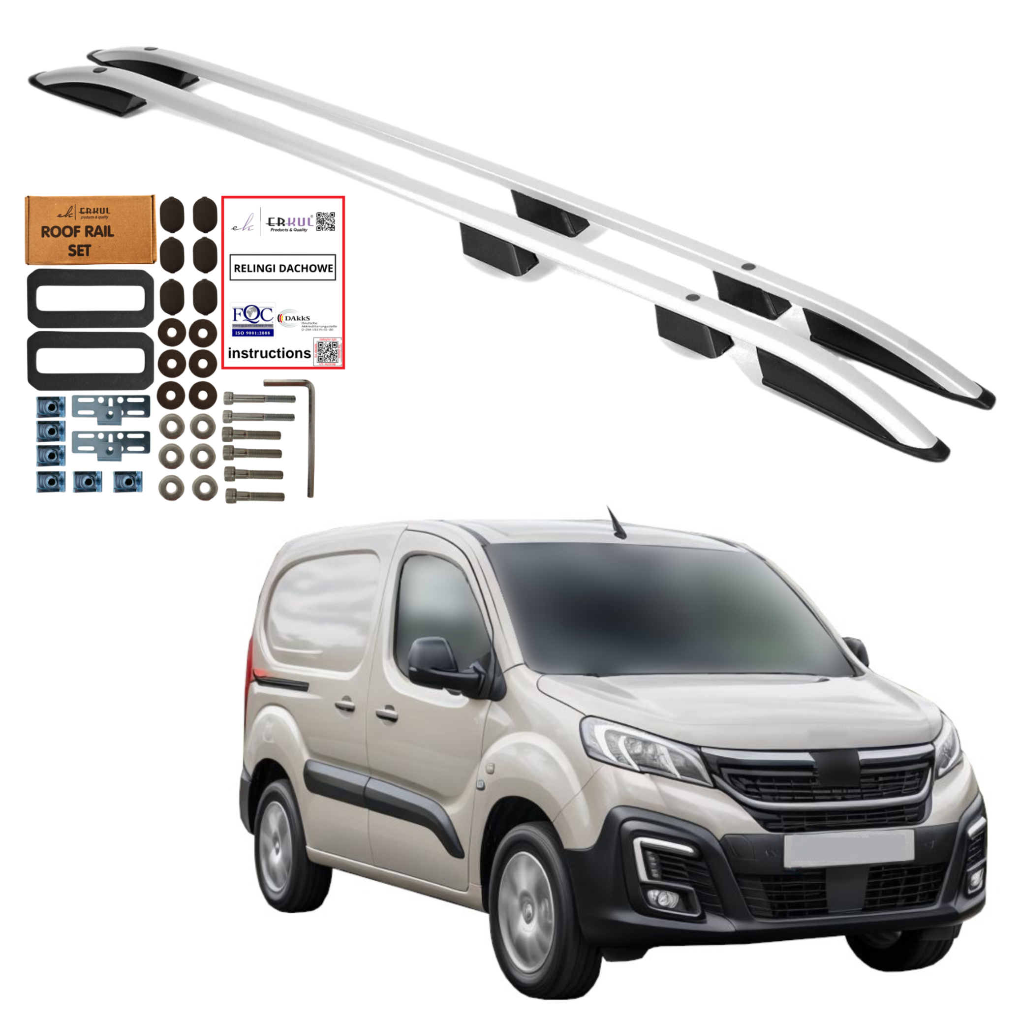 ✅ Prosty montaż (bez zdejmowania podsufitki, relingi mocowane wytrzymałymi śrubami w fabryczne miejsca na dachu samochodu).